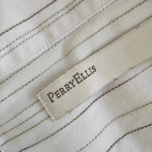 Perry Ellis Button Down Shirt stripped textured LARGE