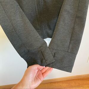 Details: thumbholes, mock neck, pockets, full zip