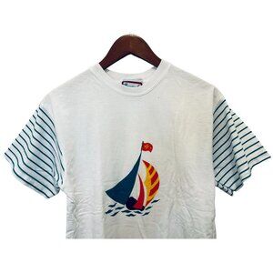 PERSPECTIVE Nautical Oversized Tee Crewneck Cotton Sale Boat White Size Small