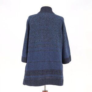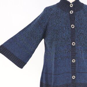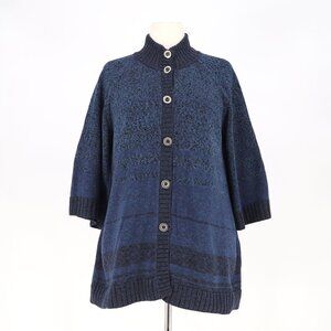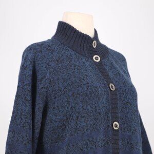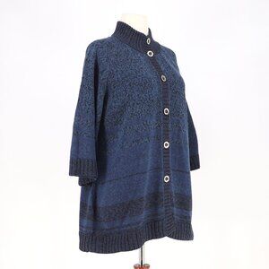 PERUVIAN CONNECTION Button Up 3/4 Sleeve Knit Cardigan Sweater Blue Size XL