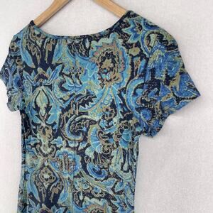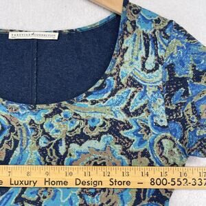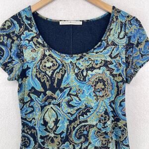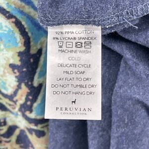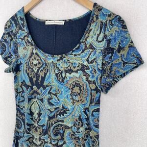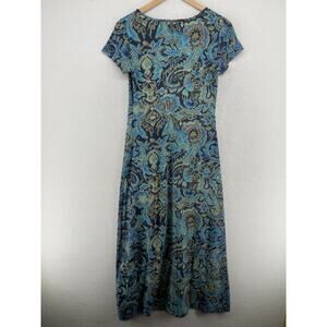 PERUVIAN CONNECTION Dress XS Paisley Midi Cap Sleeve Stretch Pima Cotton Blue