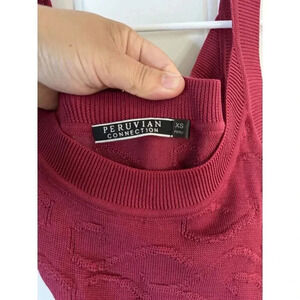 PERUVIAN CONNECTION Pima Cotton Knit Bodycon Textured Red Dress XS Boho Stretch