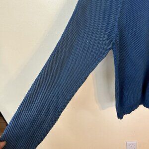 High quality open knit unisex pullover sweater. Pima knit cotton. Wash separately. Good condition. I see no holes or imperfections. Long arms.