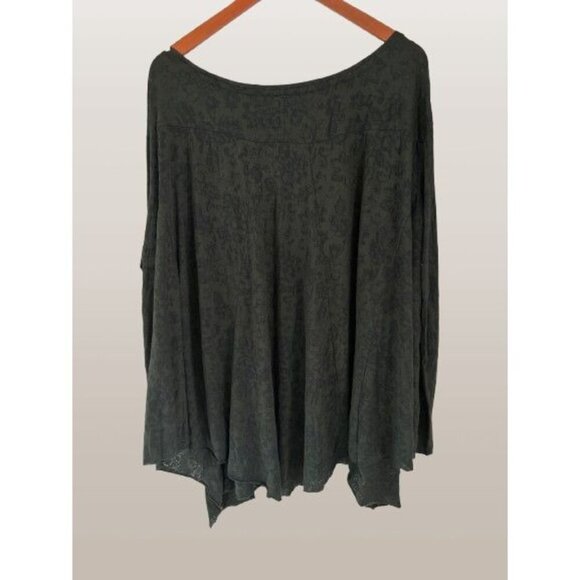 PERUVIAN CONNECTION Tunic Boatneck Hunter Green Floral All Over Large