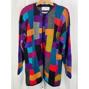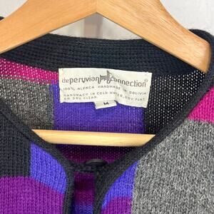PERUVIAN CONNECTION VTG Alpaca Cardigan Sweater Handmade Bolivia Multicolor M