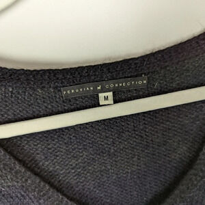 PERUVIAN CONNECTION sz.S 100% Alpaca Floral Chunky Knit Scalloped V Neck Sweater