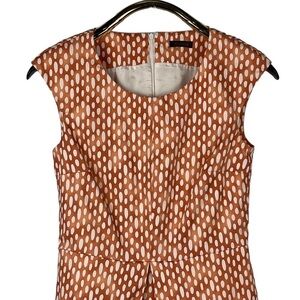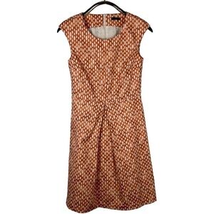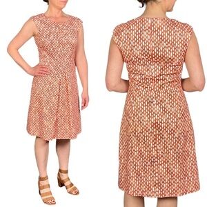 PESERICO DOT DASH ORANGE CAP SLEEVE ROUND NECK INVERTED PLEAT DRESS