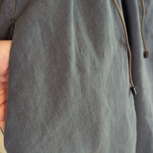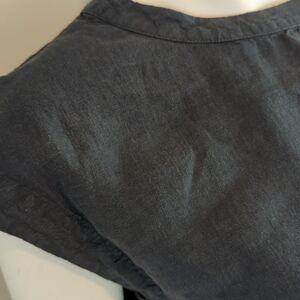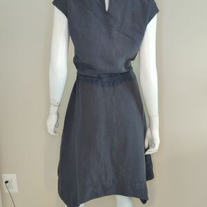Lovely cap sleeve 100% linen dress with leather tie waist and handkerchief hem