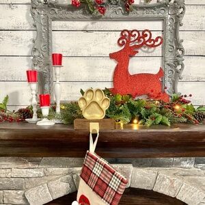 PET Gold paw w/ wood base hook leash holder or for Christmas stocking