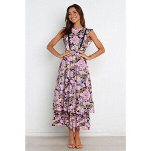 Elegant and flattering, the Petal and Pup Delphina Floral Midi Dress in US size 2 offers a chic floral design perfect for any occasion. New with tags, this dress ensures style and comfort for the modern woman.
