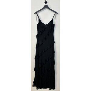 PETAL & PUP Ciao Ruffle Chiffon Gown in Black Size Large
