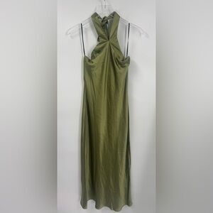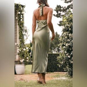 Turn heads in this maxi dress! Featuring a cross-over halter neckline with a tie close, an elasticised waistband and a drop relaxed design - it’s comfortable yet still glam. The satin feel ensures that you look as good as you feel when partying the night away.