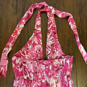 PETAL + PUP Nyla Dress Womens Sz 0 Pink Floral Halter Neck A-Line Summer Beach W12303