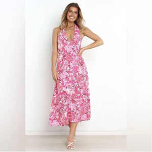 PETAL + PUP Nyla Dress Pink Floral Halter Neck A-Line Summer Beach