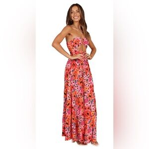 PETAL & PUP Sarai Floral Cutout Maxi Dress Multicolor Size 8 New