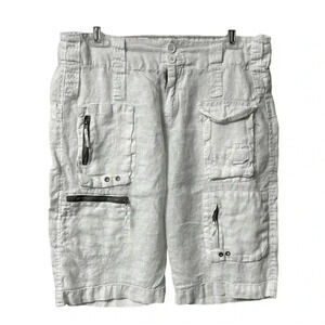 PETE & GRETA by JOHNNY WAS WHITE LINEN BERMUDA CAPRI SHORTS SZ 2