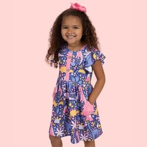 PETE + LUCY Darling Dinos Blue Ruffle Girls Boutique Dress NEW 4T Pockets