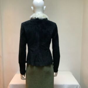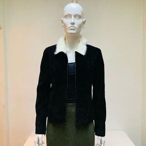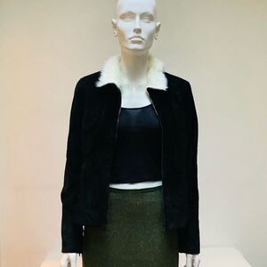 PETER COHEN ZIP FRONT FITTED SUEDE JACKET NWOT BLACK WHITE COLLAR DEATIL