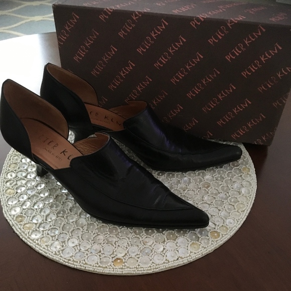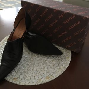 Soft. Black calf skin sexy open side. Shoe with dramatic point toe