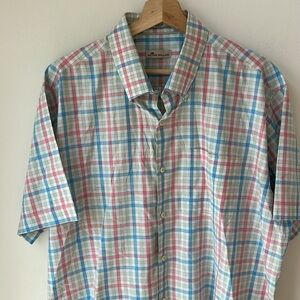 PETER MILLAR Check Casual Short Sleeve Summer Button Down Shirt XL Big Tall