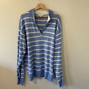 PETER MILLAR Crown XL Long Bay Merino Wool Linen Maritime Quarter Zip Swester