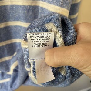 This sweater gives off a slightly nautical vibe thanks to its soft hue and distinctive striping. It's made from a blend of merino wool and linen; a winning combination for breathability and comfort when the sun shines