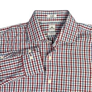 PETER MILLAR MEN'S (16 / L) 100% COTTON RED, WHITE, AND BLUE PLAID BUTTON-DOWN DRESS SHIRT