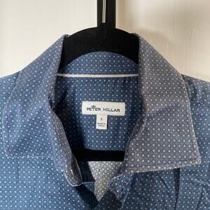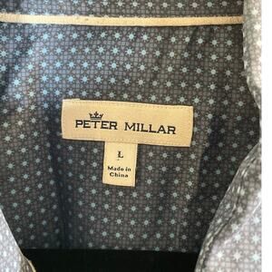 PETER MILLAR Men's Short Sleeve Geometric Crown Shirt Large Dark Blue Pocket