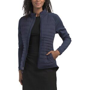 2 front zip pockets, wind resistant, water resistant, quilted bodice