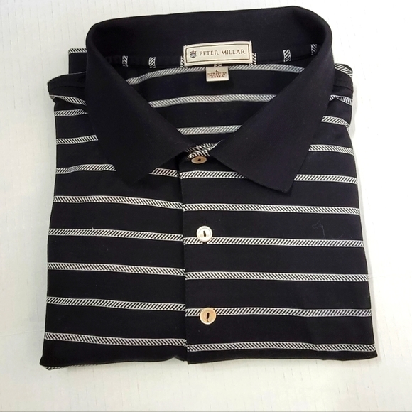 🏌♂️PETER MILLAR⛳️ PREMIUM💎GOLF POLO BLACK&WHITE STRIPED🏌SIZE L