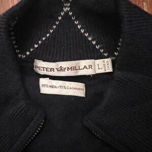 Good preowned condition Peter Millar quarter zip up sweater. Wool and cashmere blend with leather zipper pull.