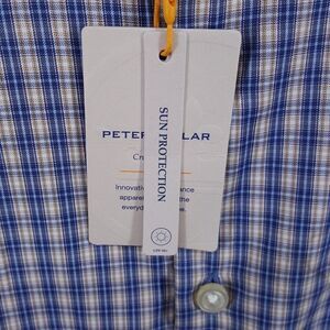 PETER MILLAR Shirt Mens Medium Blue Check Summer Comfort Prairie Performance