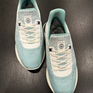 Peter Millar Golf Hyperlight Apollo Women's Casual Shoes - Splash blue to white ombre with white sole with navy outsole.