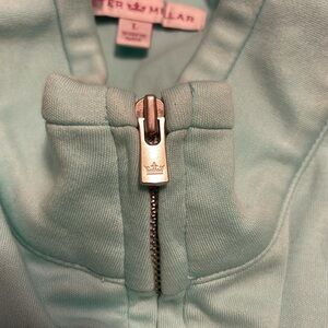PETER MILLAR women’s size large light blue long sleeve 100% cotton fulll zip up