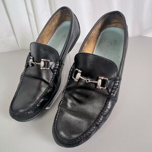 Pre-owned Peter Millar Mens black driving shoes size 10.5 M. Bottoms have some wear but are stilll good. Outside had some scuffs but shoes were re-dyed by shoe repair. Insoles cleaned. Good condition