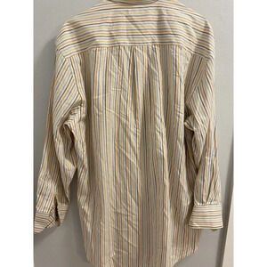 PETER MILLAR STRIPED BUTTON UP SHIRT - SIZE MEDIUM - WHITE ORANGE YELLOW BLUE GREY