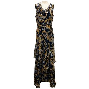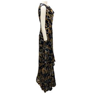 Peter Pilotto Black / Gold / Silver Metallic Sleeveless Silk Maxi Dress