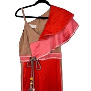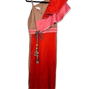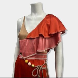 PETER PILOTTO asymmetrical cut orange/coral jumpsuit with side detailing Size 6