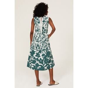 PETER SOM Green Floral Cotton Blend Sleeveless Crewneck Midi Dress size 8