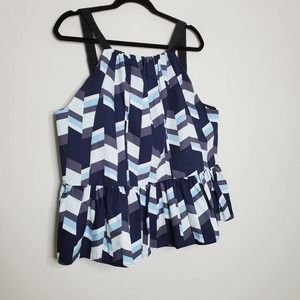 PETER SOM for ANTHROPOLOGIE • Blue Geometric Print Nikola Flounce Cami Sz PL