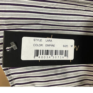 Get ready to turn heads with the Petersyn “Lara” Blouse in “Empire” color! This striped, one-shoulder blouse features a puff gathered sleeve, side zip, and is made of lightweight cotton. New with tags, size Medium. Measurements-approximate in inches taken flat: Bust 18.75/Waist 19.5/Length 25.5 inches.