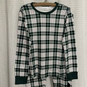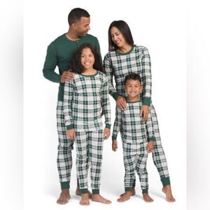 PETIT LEM GreenβWhite Red Holiday Plaid 100% Cotton Long Sleeve PJ Jogger Set
