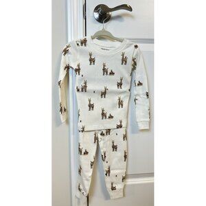PETIT LEM Rudy and Reindeers Print on Off White PJ Set Size 18 Months