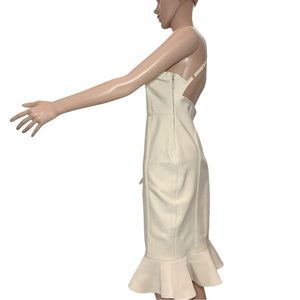 PETITE BANDAGE HALTER BODYCON MIDI DRESS, size 10, COLOR: Ivory