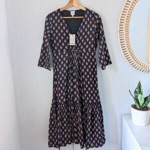 PETITE MENDIGOTE Inaya Lobelia midi dress, Navy Floral Print S, cotton, NWT