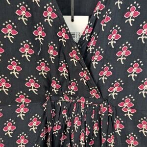This is a new Inaya Lobelia dress from the French brand Petite Mendigote in size S. 100 % cotton, great quality. Navy with pink/purple pattern. V-neck, midi length.