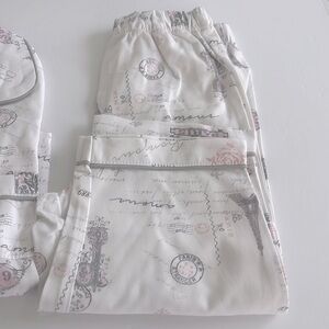 Antique illustrations of the Tour d’Iffel, Paris signage, and the Metro grace this subtle print celebrating the City of Light in all its legendary glory. Rendered in a chic muted gray upon a crème background with hints of pink, like cheeks blushing in the brisk air. The fabric is made from 100% of the finest quality cotton. It is yarn-dyed to prevent fade and brushed for added softness, making the sleepwear feel absolutely luxurious, getting cozier with each wash.