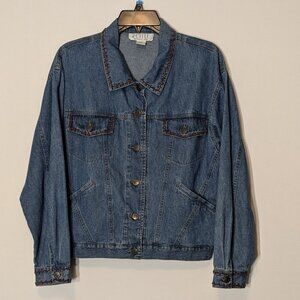 PETITE SOPHISTICATE Blue Denim Jean Jacket w Red Beaded Accents; Size PL