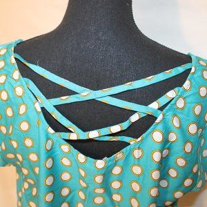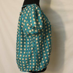 PETITE WOMAN GREEN WITH WHITE POLKA DOT BLOUSE SIZE XL ELASTIC WAISTLINE BALLOON