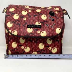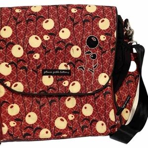 This stylish baby bag from Petunia Pickle Bottom features a unique Jack Skellington design on a red and black color scheme. Crafted for durability, it includes a convenient flap-over closure and an adjustable shoulder strap for easy cross-body wear. Perfect for parents who love a touch of whimsy in their everyday essentials.